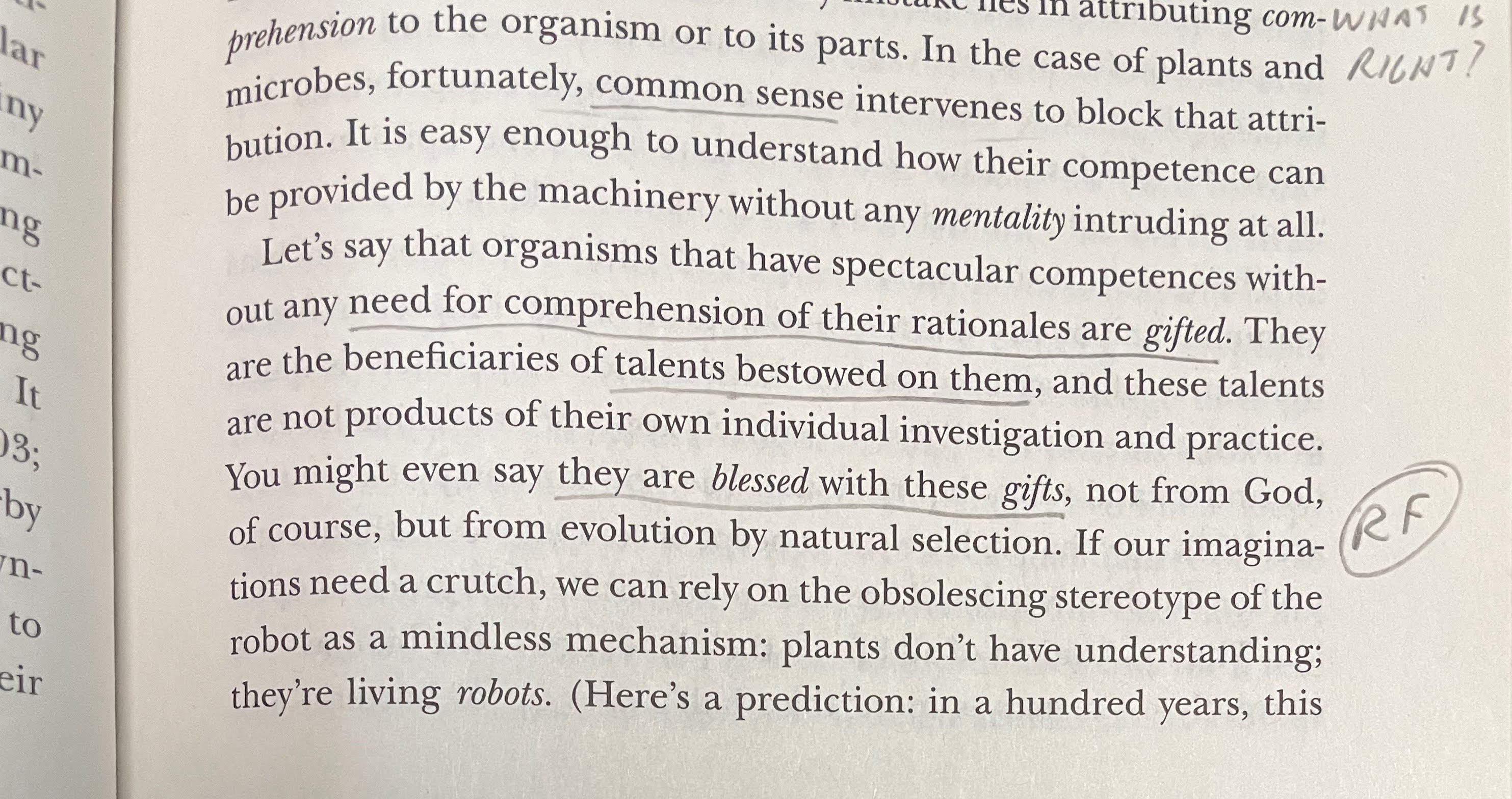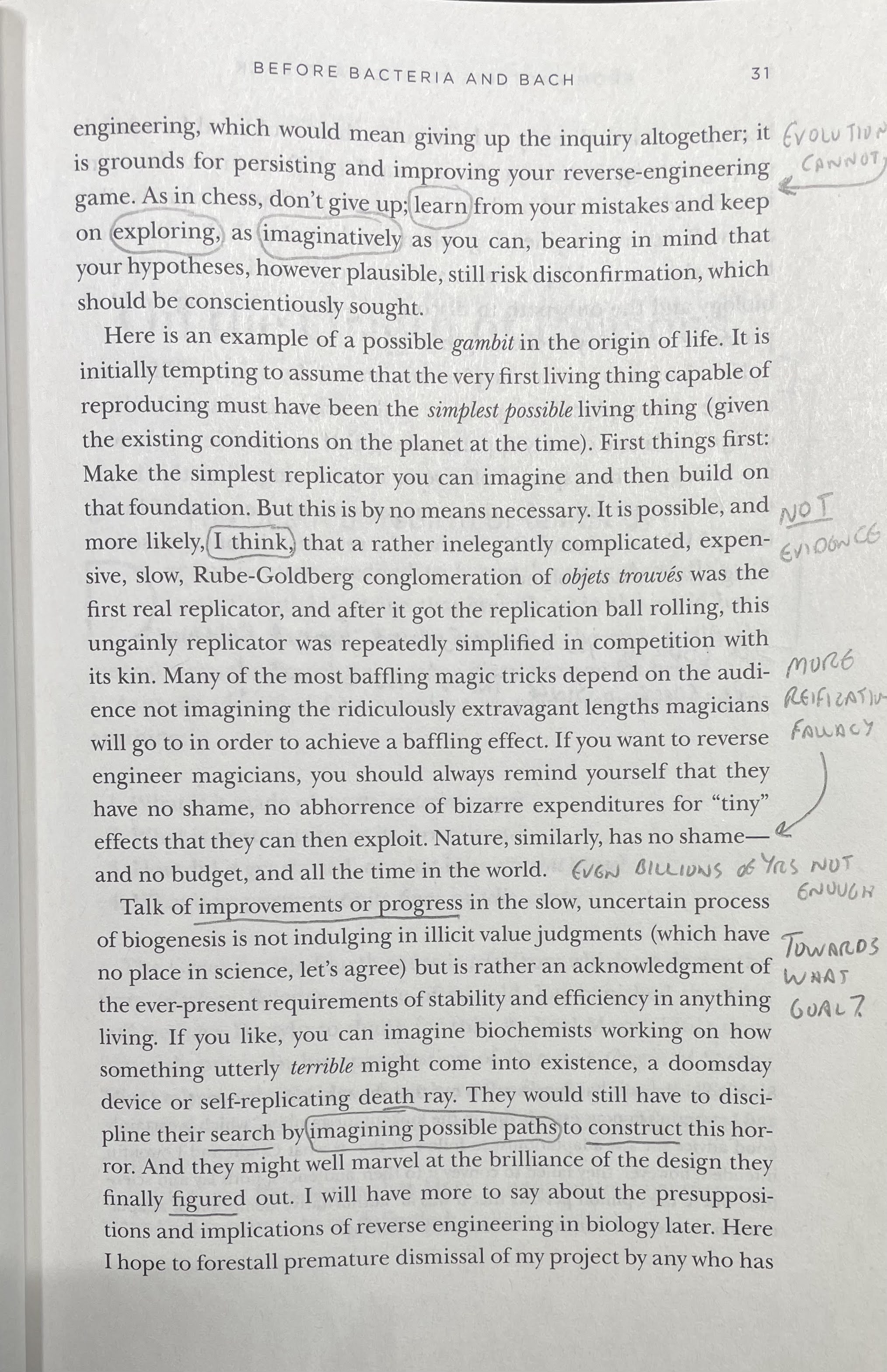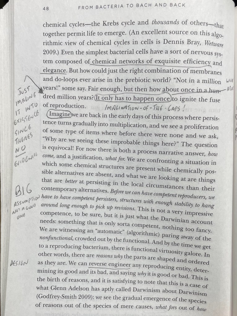 Both Derek Bickerton (in his book “More Than Nature Needs: Language, Mind, and Evolution”) and Dennett recognize the unfathomably massive gap in reasoning/cognition between animals and humans for which evolution must account. They strip away the things they see won’t work: natural selection, and have to propose something for which the purposeless universe is incapable: purposeful invention.