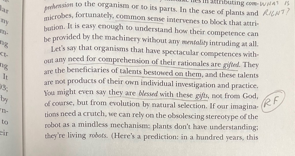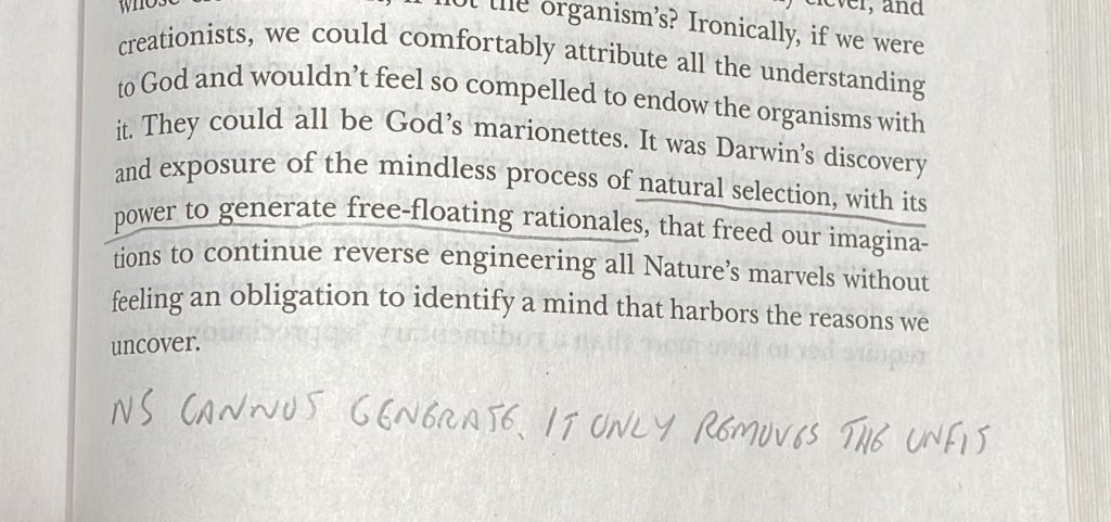 One final screenshot to reinforce Dennett’s misuse of language and understanding of evolution. On P339, he again reifies evolution as if it has special powers: