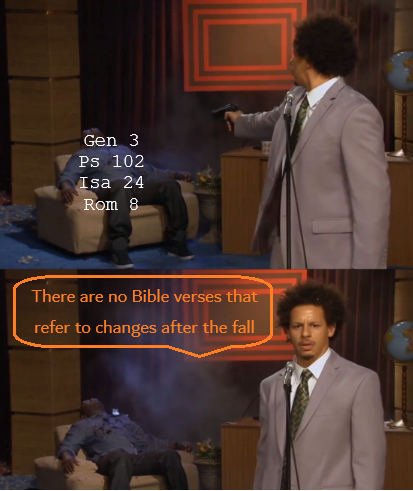 Americans on average go through 12 years of public school indoctrination in evolution. Those, who go to college and those who get advanced degrees get 4, 6 or 8 more years of deeper indoctrination into the ideas that animals have been dying for millions of years. Even those who don’t get advanced degrees are saturated with movies and tv shows and news bulletins and flyers and conversations among work associates that bloodshed and death are pervasive for the assumed millions of years of evolutionary development. Some would call this science, but it is at the very least a philosophical idea that is deeply ingrained in 21st century thinking. It takes courage and discernment not to drink in and believe the worldly philosophy of evolutionism as a basic assumption. My friend may or may not believe in evolution, but the influence of the philosophies of death for millions of years is both pervasive and assumed in this culture. Many Christians who have been indoctrinated in the philosophy of death for millions of years search for holes in the text of the Bible to see if there is room to insert these outside ideas of death and suffering before the fall into sin. See if in this debate, you can discern how the assumptions of death have influenced the arguments of my friend rather than starting instead with the eternal word of God.